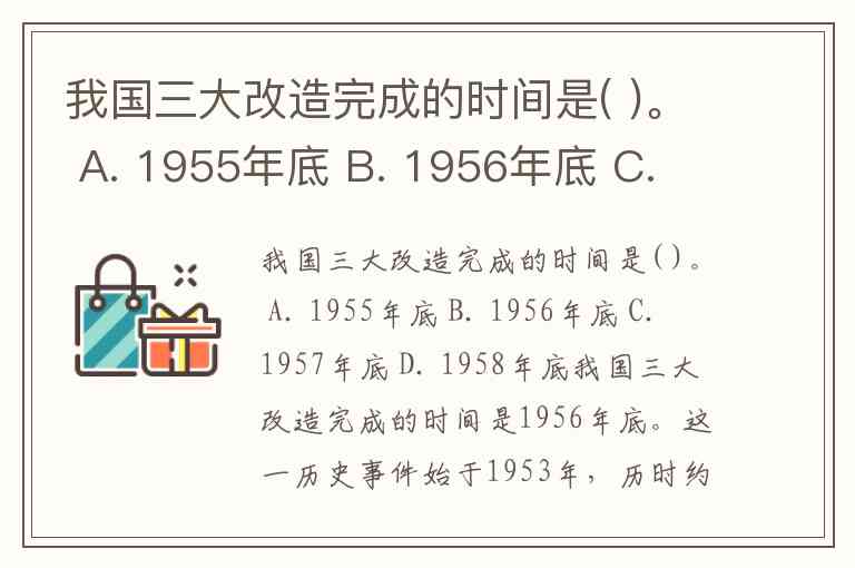 我国三大改造完成的时间是( )。 A. 1955年底 B. 1956年底 C. 1957年底 D. 1958年底