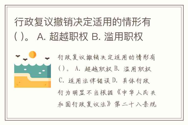 行政复议撤销决定适用的情形有( )。 A. 超越职权 B. 滥用职权 C. 适用法律错误 D. 具体行政行为明显不当