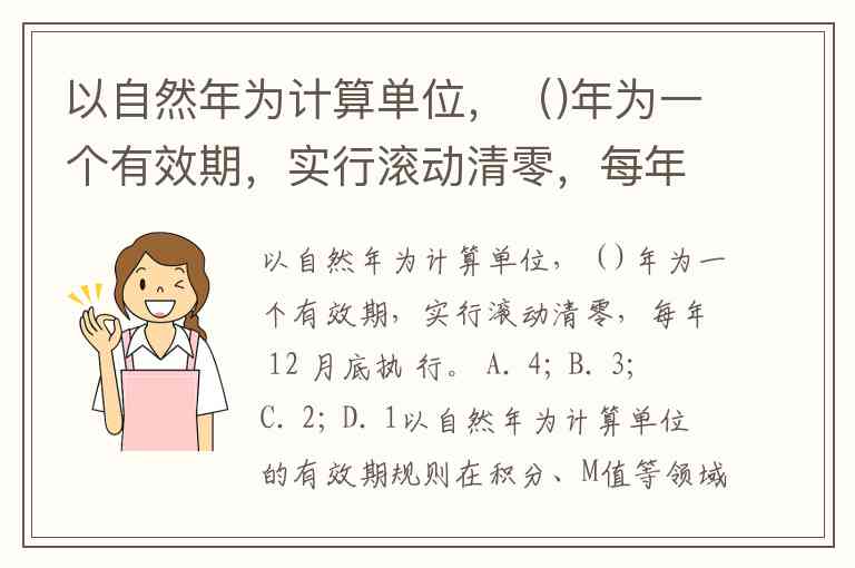 以自然年为计算单位,()年为一个有效期,实行滚动清零,每年 12 月底执 行。 A. 4; B. 3; C. 2; D. 1