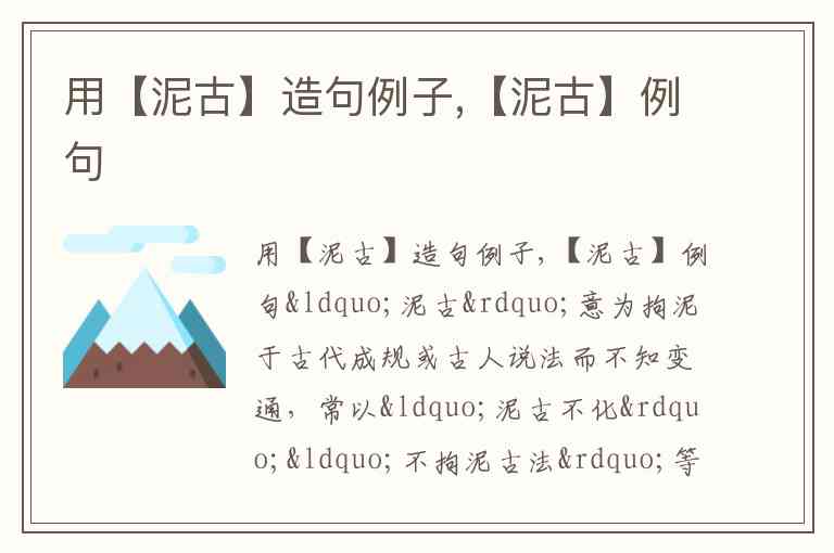 “泥古”意为拘泥于古代成规或古人说法而不知变通,常以“泥古不化”“不拘泥古法”等形式出现。以下是不同语境中的典型用法: