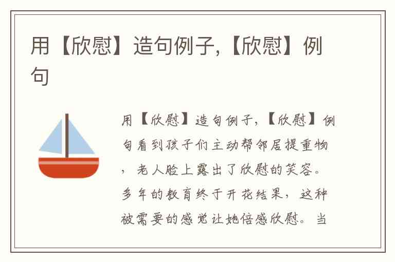看到孩子们主动帮邻居提重物,老人脸上露出了欣慰的笑容。多年的教育终于开花结果,这种被需要的感觉让她倍感欣慰。当流浪猫在新家安心睡下时,救助者眼中满是欣慰。医生看着患者复查报告上的“指标正常”,疲惫的脸上泛起欣慰的光彩。学生们用攒了半年的零花钱为山区孩子买书,老师为此感到由衷欣慰。