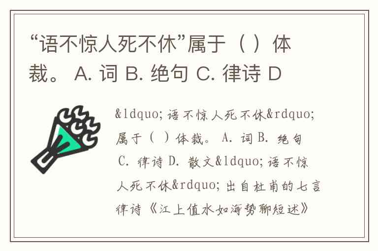 “语不惊人死不休”属于( )体裁。 A. 词 B. 绝句 C. 律诗 D. 散文