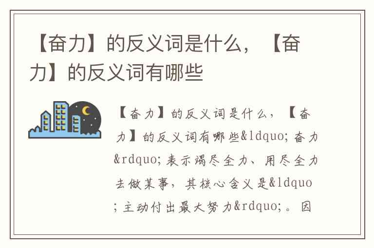 “奋力”表示竭尽全力、用尽全力去做某事,其核心含义是“主动付出最大努力”。因此,它的反义词应围绕“不努力”“不主动”或“敷衍应付”的语义展开。