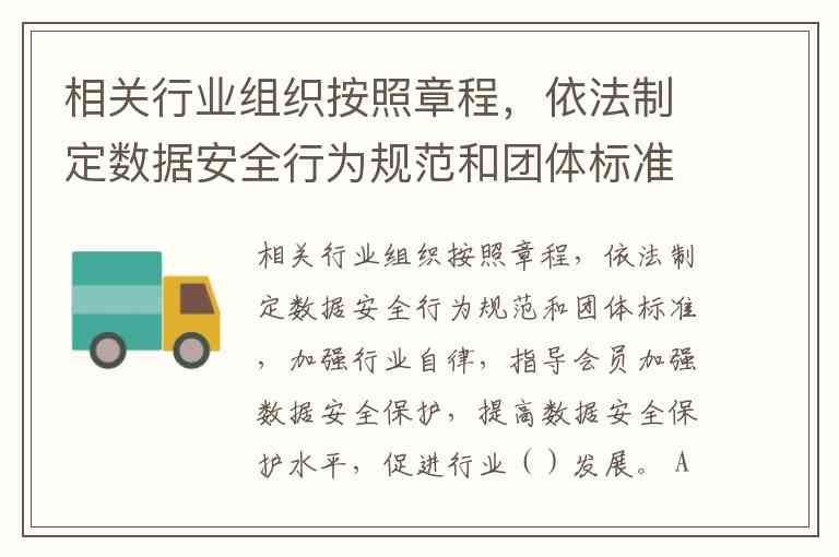 相关行业组织按照章程,依法制定数据安全行为规范和团体标准,加强行业自律,指导会员加强数据安全保护,提高数据安全保护水平,促进行业()发展。 A. 和谐 B. 健康 C. 平稳 D. 稳定