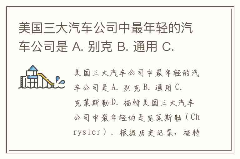 美国三大汽车公司中最年轻的汽车公司是 A. 别克 B. 通用 C. 克莱斯勒 D. 福特