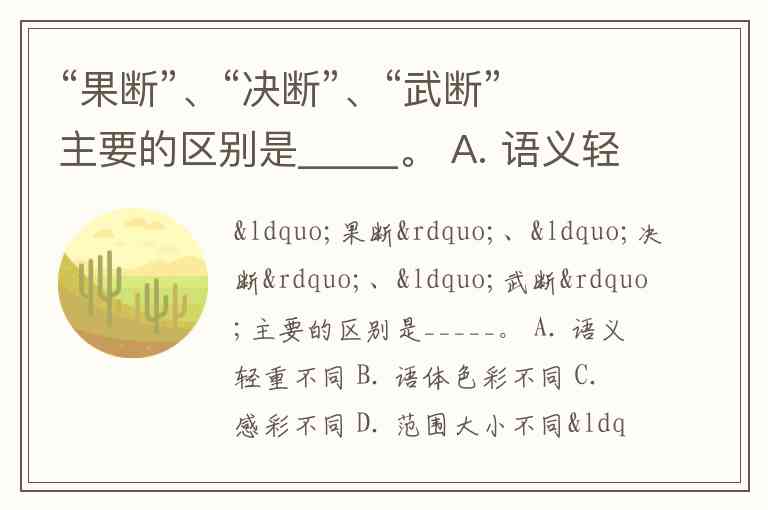 “果断”、“决断”、“武断”主要的区别是_____。 A. 语义轻重不同 B. 语体色彩不同 C. 感彩不同 D. 范围大小不同