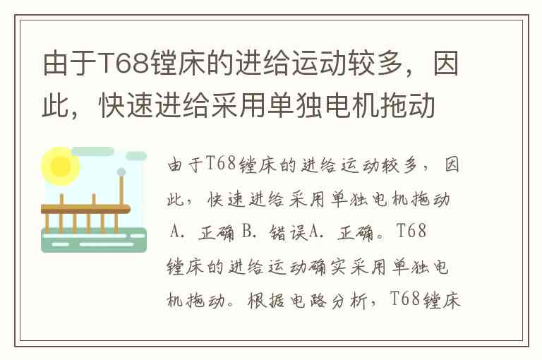 由于T68镗床的进给运动较多,因此,快速进给采用单独电机拖动 A. 正确 B. 错误