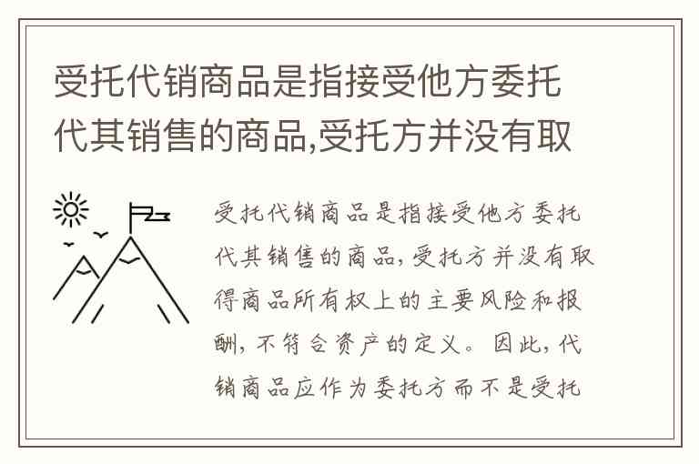 受托代销商品是指接受他方委托代其销售的商品,受托方并没有取得商品所有权上的主要风险和报酬,不符合资产的定义。因此,代销商品应作为委托方而不是受托方的存货处理,不能确认为受托方的资产。企业收到受托代销商品的时候,应该借记“受托代销商品”科目,贷记“受托代销商品款”科目,将受托代销商品纳入账内核算。() A. 正确 B. 错误