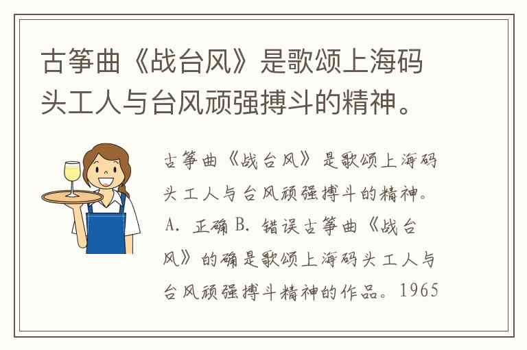 古筝曲《战台风》是歌颂上海码头工人与台风顽强搏斗的精神。 A. 正确 B. 错误