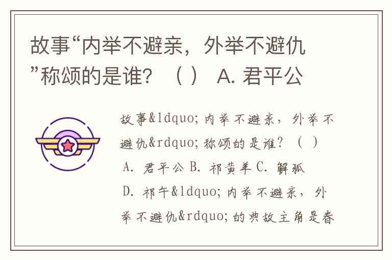 故事“内举不避亲,外举不避仇”称颂的是谁?( ) A. 君平公 B. 祁黄羊 C. 解狐 D. 祁午