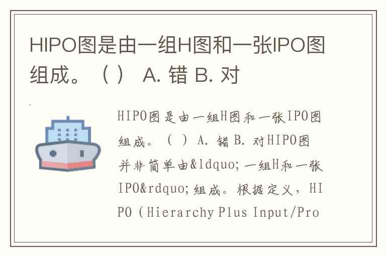 HIPO图是由一组H图和一张IPO图组成。( ) A. 错 B. 对