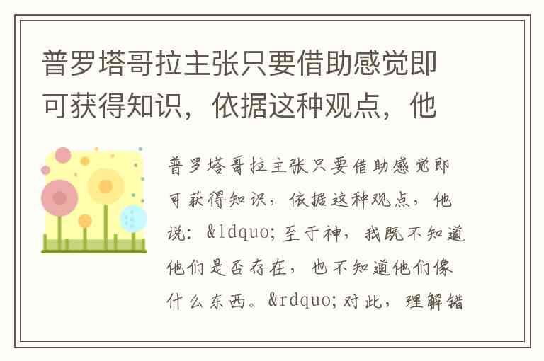 普罗塔哥拉主张只要借助感觉即可获得知识,依据这种观点,他说:“至于神,我既不知道他们是否存在,也不知道他们像什么东西。”对此,理解错误的是() A. 它把感觉看成是真理的标准,含有主观唯心主义成分 B. 他看到了不同人的感觉有对立与差异,体现了人类认识的深入 C. 他忽视了人在现实中的地位 D. 他重视人而怀疑神