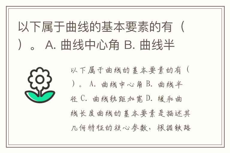 以下属于曲线的基本要素的有()。 A. 曲线中心角 B. 曲线半径 C. 曲线轨距加宽 D. 缓和曲线长度
