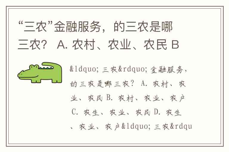 “三农”金融服务,的三农是哪三农? A. 农村、农业、农民 B. 农村、农业、农户 C. 农生、农业、农民 D. 农生、农业、农户