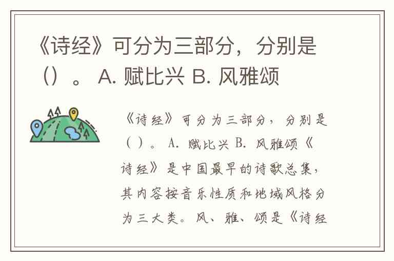 《诗经》可分为三部分,分别是()。 A. 赋比兴 B. 风雅颂