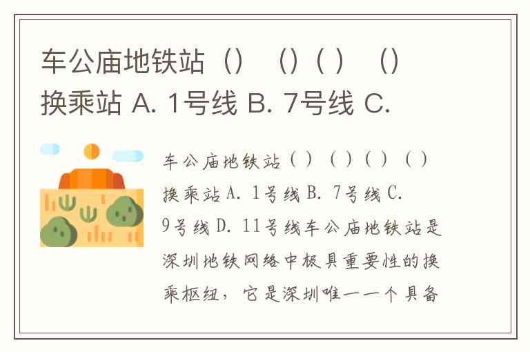 车公庙地铁站()()( )()换乘站 A. 1号线 B. 7号线 C. 9号线 D. 11号线