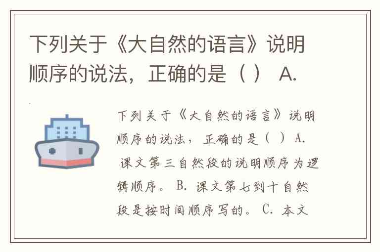 《大自然的语言》的说明顺序以逻辑顺序为主,不同段落和部分各有侧重。以下是对各选项的具体分析:
