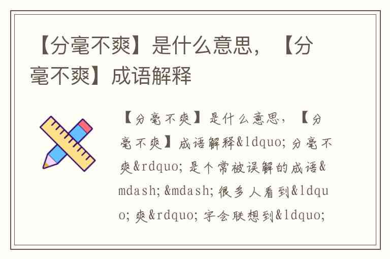 “分毫不爽”是个常被误解的成语——很多人看到“爽”字会联想到“爽快”,但它的真正含义是形容事情完全符合预期,没有丝毫差错。这里的“爽”并非现代语境中的舒适畅快,而是古汉语中的“差失、违背”之意,与“屡试不爽”“毫发不爽”中的“爽”同义。