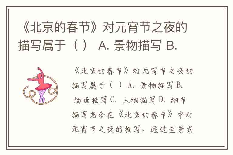 《北京的春节》对元宵节之夜的描写属于( ) A. 景物描写 B. 场面描写 C. 人物描写 D. 细节描写