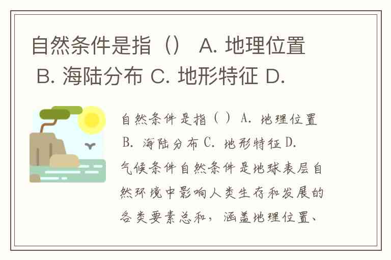 自然条件是指() A. 地理位置 B. 海陆分布 C. 地形特征 D. 气候条件