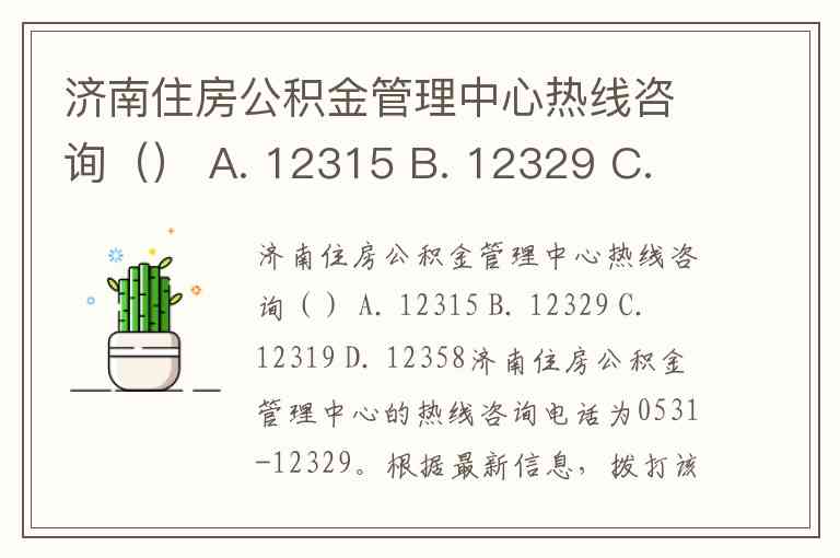 济南住房公积金管理中心热线咨询() A. 12315 B. 12329 C. 12319 D. 12358