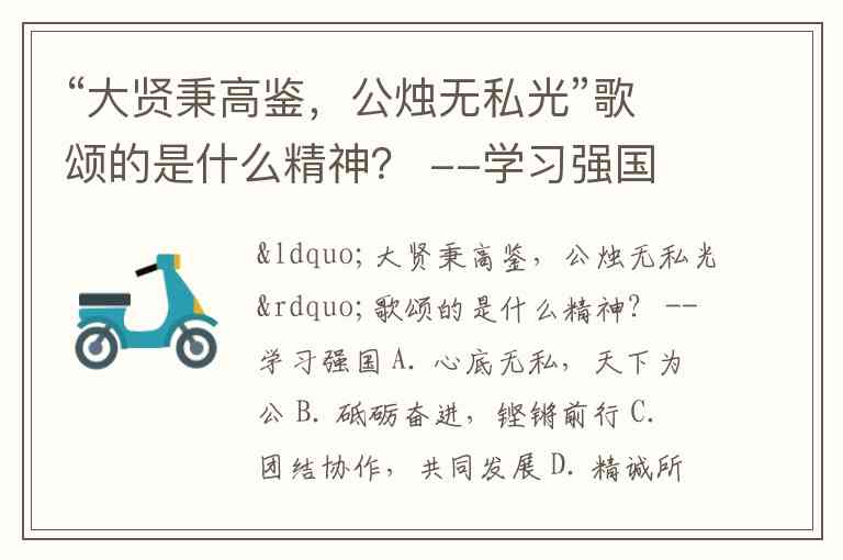 “大贤秉高鉴,公烛无私光”歌颂的是什么精神? --学习强国 A. 心底无私,天下为公 B. 砥砺奋进,铿锵前行 C. 团结协作,共同发展 D. 精诚所至,金石为开
