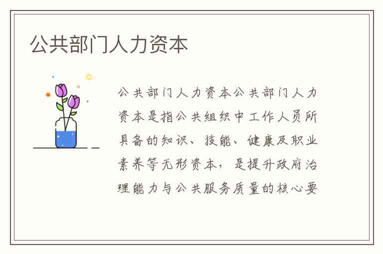 公共部门人力资本是指公共组织中工作人员所具备的知识、技能、健康及职业素养等无形资本,是提升政府治理能力与公共服务质量的核心要素。不同于私营部门以利润最大化为导向,公共部门人力资本管理需兼顾政治属性、社会公平与组织效能,其特殊性体现在产权运作、激励机制和价值取向上。例如,公共部门员工的知识技能无法像物质资本那样直接交易,只能通过服务公众间接实现价值,这使得“所有资本中最有价值的是对人本身的投资”这一论断在公共领域具有特殊意义。
