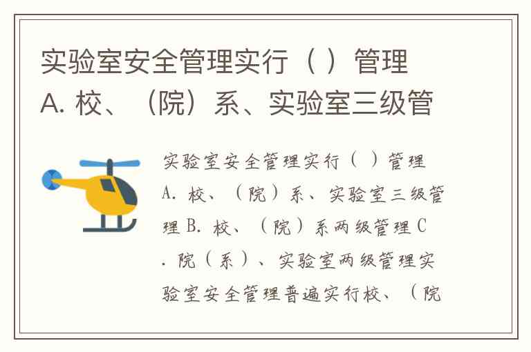 实验室安全管理实行( )管理 A. 校、(院)系、实验室三级管理 B. 校、(院)系两级管理 C. 院(系)、实验室两级管理