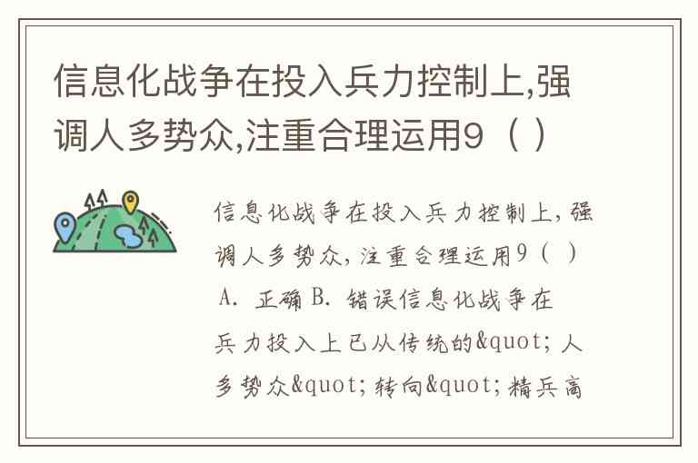 信息化战争在投入兵力控制上,强调人多势众,注重合理运用9( ) A. 正确 B. 错误