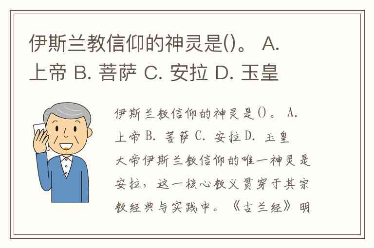 伊斯兰教信仰的神灵是()。 A. 上帝 B. 菩萨 C. 安拉 D. 玉皇大帝