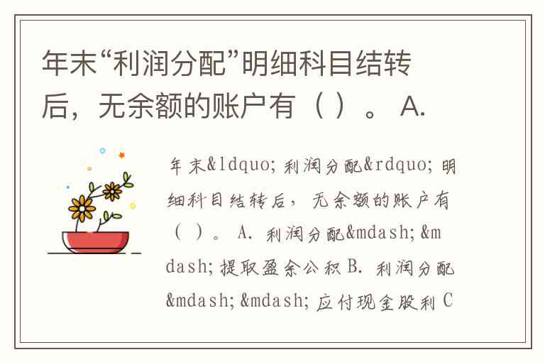 年末“利润分配”明细科目结转后,无余额的账户有( )。 A. 利润分配——提取盈余公积 B. 利润分配——应付现金股利 C. 利润分配——盈余公积补亏 D. 本年利润 E. 利润分配——未分配利润