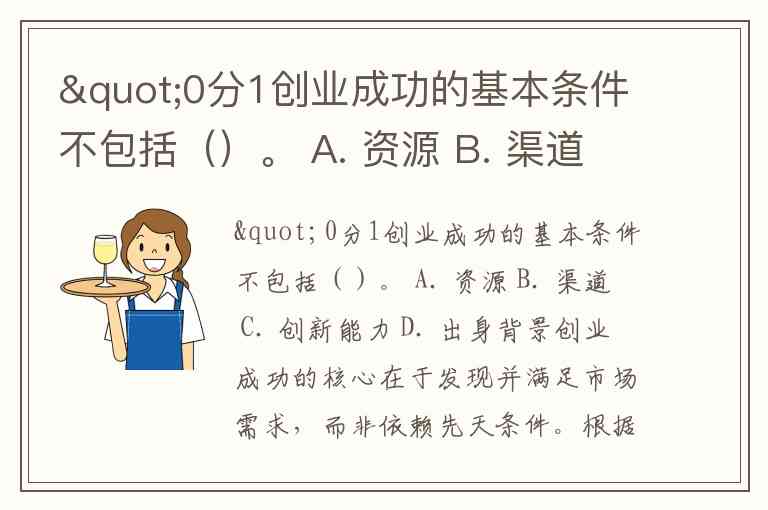 "0分1创业成功的基本条件不包括()。 A. 资源 B. 渠道 C. 创新能力 D. 出身背景