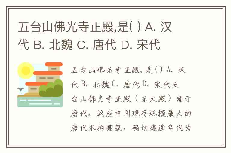 五台山佛光寺正殿,是( ) A. 汉代 B. 北魏 C. 唐代 D. 宋代