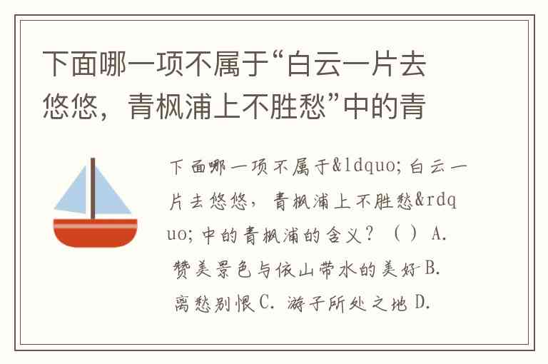 下面哪一项不属于“白云一片去悠悠,青枫浦上不胜愁”中的青枫浦的含义?() A. 赞美景色与依山带水的美好 B. 离愁别恨 C. 游子所处之地 D. 相思愁绪