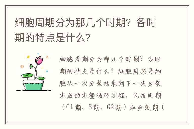 间期占细胞周期的90%以上,是细胞生长和遗传物质复制的关键时期,分为G1期、S期和G2期三个阶段。