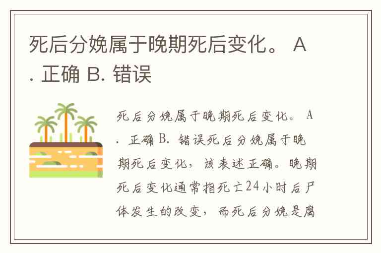 死后分娩属于晚期死后变化。 A. 正确 B. 错误