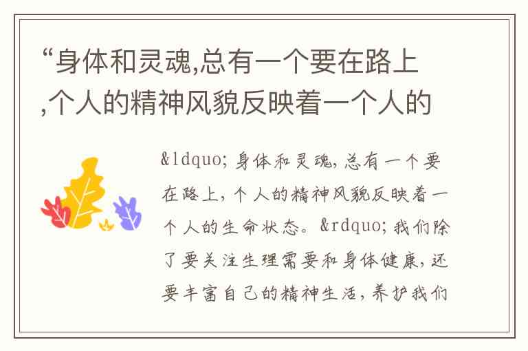 “身体和灵魂,总有一个要在路上,个人的精神风貌反映着一个人的生命状态。”我们除了要关注生理需要和身体健康,还要丰富自己的精神生活,养护我们的精神。下列做法中,有利于养护我们精神的是( ) A. 参加研学旅行,充盈自己的精神世界 B. 注重物质享受,健康快乐地生活 C. 生活追求完美,珍爱自己和他人生命 D. 注重健康饮食,养成良好生活习惯