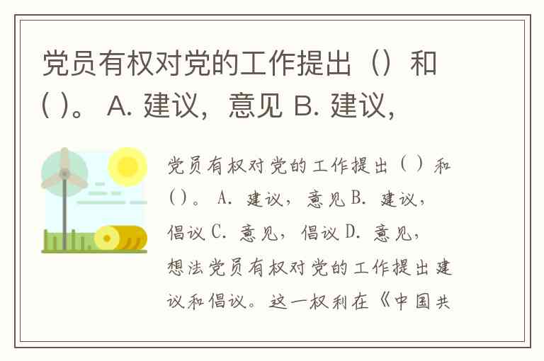 党员有权对党的工作提出()和( )。 A. 建议,意见 B. 建议,倡议 C. 意见,倡议 D. 意见,想法