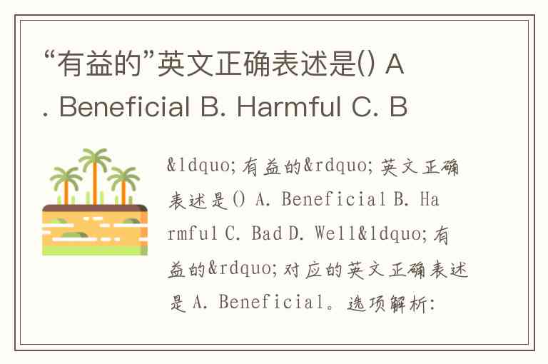 “有益的”英文正确表述是() A. Beneficial B. Harmful C. Bad D. Well