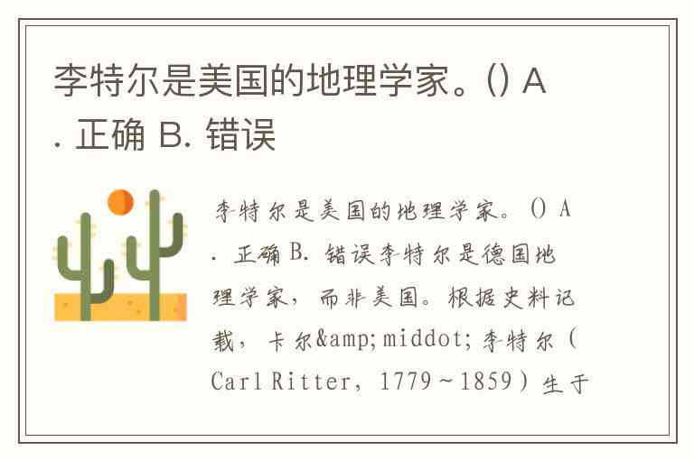 这一问题的混淆可能源于对近代地理学奠基人的国籍记忆偏差。与李特尔同期的另一位地理学大师洪堡(Alexander von Humboldt)同样是德国人,两人并称为近代地理学的奠基人,共同推动地理学成为独立学科。若将19世纪德国地理学的辉煌成就误记为美国,便会产生此类误解。