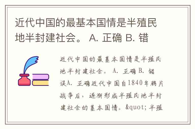 近代中国的最基本国情是半殖民地半封建社会。 A. 正确 B. 错误
