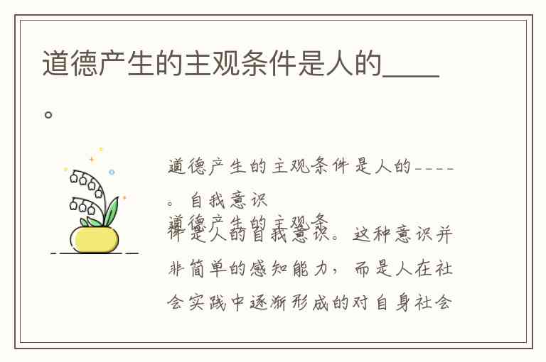 道德产生的主观条件是人的自我意识。这种意识并非简单的感知能力,而是人在社会实践中逐渐形成的对自身社会性的认知,包括对个体与他人、集体利益关系的觉察,以及调节这些关系的主动意识。