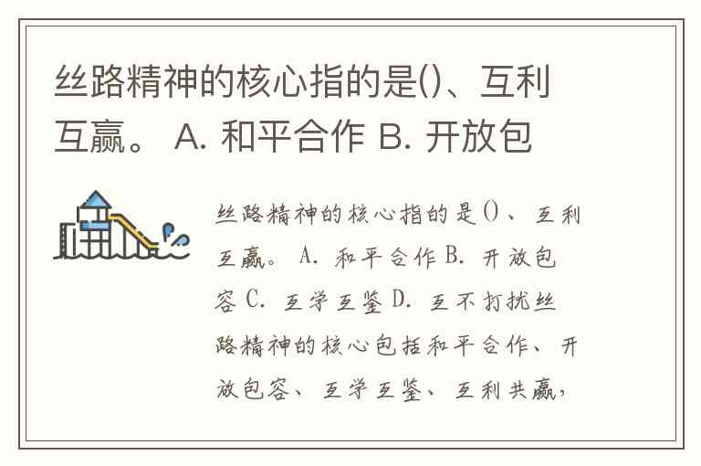 丝路精神的核心指的是()、互利互赢。 A. 和平合作 B. 开放包容 C. 互学互鉴 D. 互不打扰