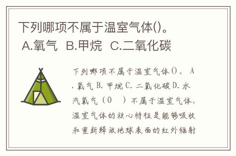 下列哪项不属于温室气体()。 A.氧气 B.甲烷 C.二氧化碳 D.水汽