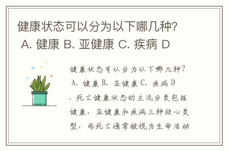 健康状态可以分为以下哪几种? A. 健康 B. 亚健康 C. 疾病 D. 死亡