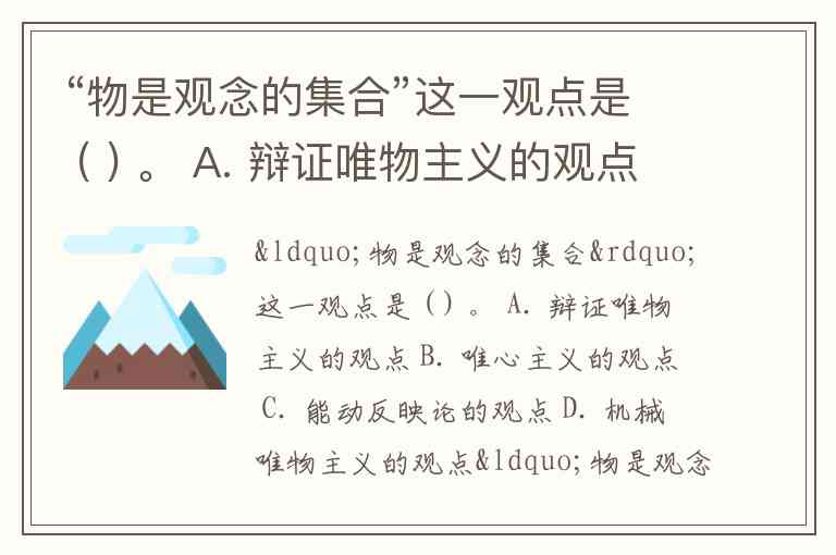 “物是观念的集合”这一观点是 ( ) 。 A. 辩证唯物主义的观点 B. 唯心主义的观点 C. 能动反映论的观点 D. 机械唯物主义的观点