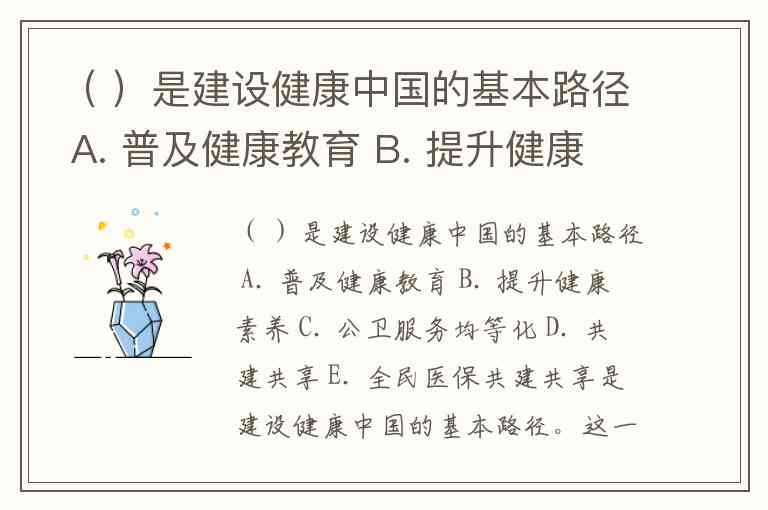 ( )是建设健康中国的基本路径 A. 普及健康教育 B. 提升健康素养 C. 公卫服务均等化 D. 共建共享 E. 全民医保