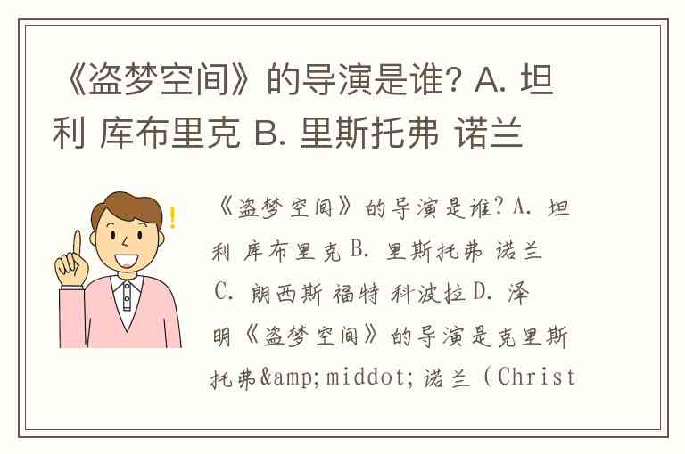 《盗梦空间》的导演是谁? A. 坦利 库布里克 B. 里斯托弗 诺兰 C. 朗西斯 福特 科波拉 D. 泽明