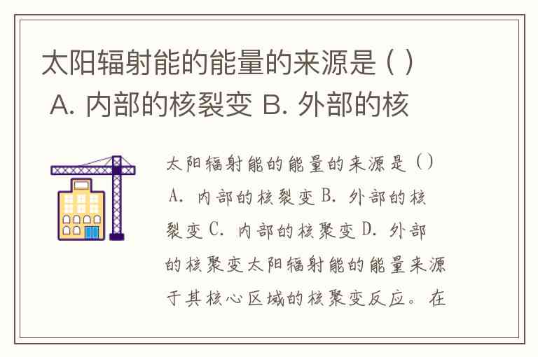 太阳辐射能的能量的来源是 ( ) A. 内部的核裂变 B. 外部的核裂变 C. 内部的核聚变 D. 外部的核聚变