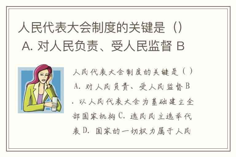 人民代表大会制度的关键是() A. 对人民负责、受人民监督 B. 以人民代表大会为基础建立全部国家机构 C. 选民民主选举代表 D. 国家的一切权力属于人民